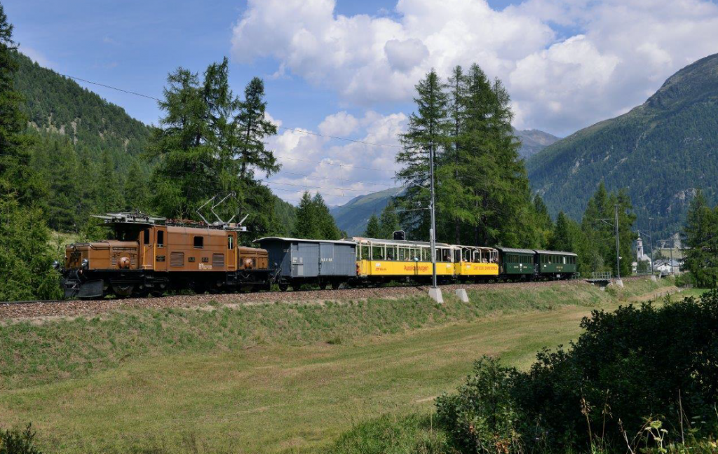 Die nostalgischen Bahnwagen der 1. und 2. Klasse und offenen Aussichtswagen werden in der Regel von der legendären Kult-Lokomotive «Krokodil» Ge 6/6 414/415 gezogen. Die atemberaubende Reise in den teilweise über 100 Jahre alten Bahnwagen können Sie zum normalen Ticketpreis erleben. Zudem erhalten Sie einen ungewohnten Einblick in die Welt der Eisenbahn im frühen 20. Jahrhundert.