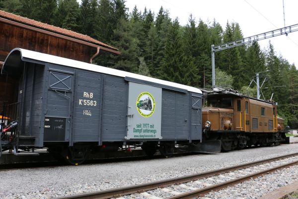 Unter der Artikelnummer 43814 hat der Gartenbahnhersteller LGB den zweiachsigen Güterwagens K5563 der Rhätischen Bahn ausgeliefert.