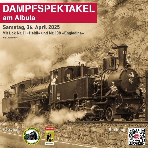 Ein weiteres Highlight steht: Die G 4/5 108 und G 3/4 11 "Heidi" fahren als Doppeltraktion am 26. April die Albulastecke hinauf. Details zum tollen Programm folgen in den nächsten Tagen.