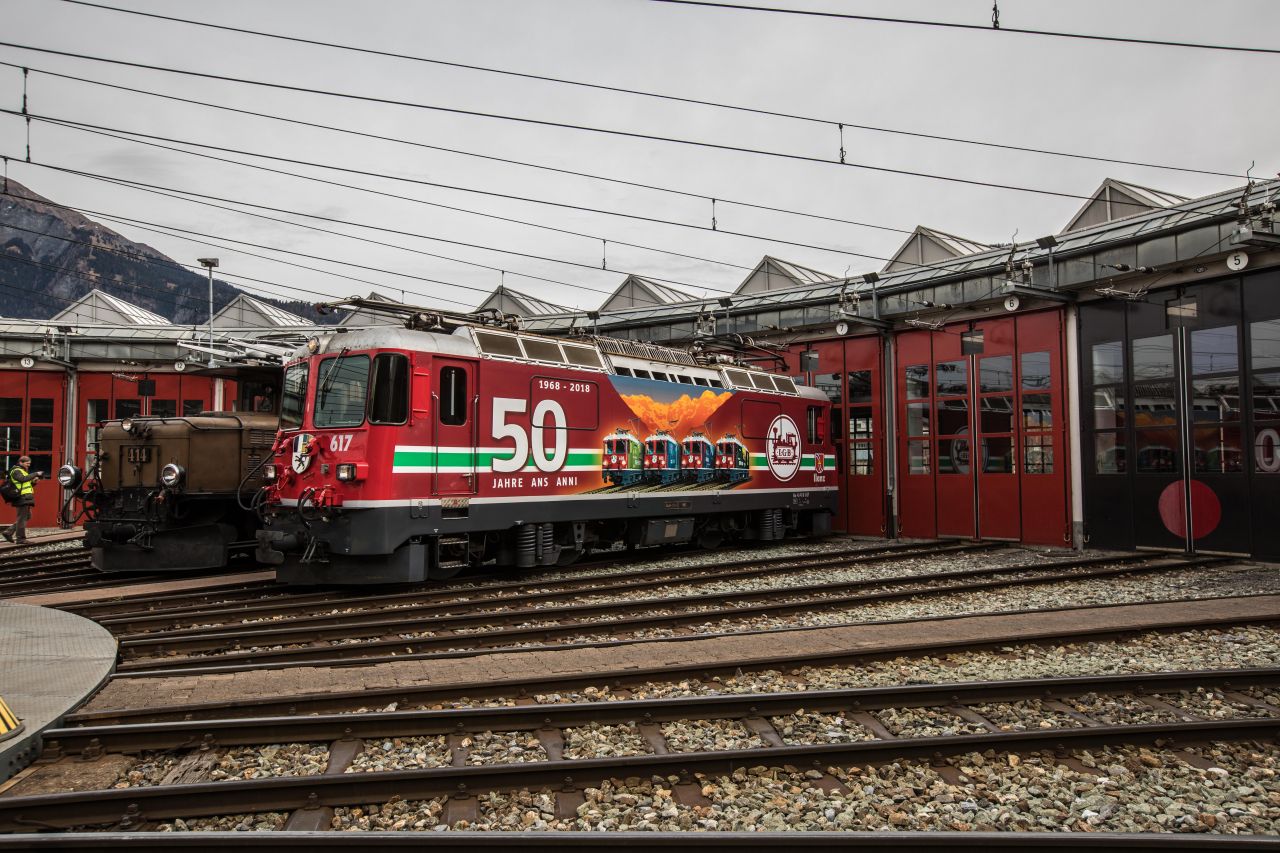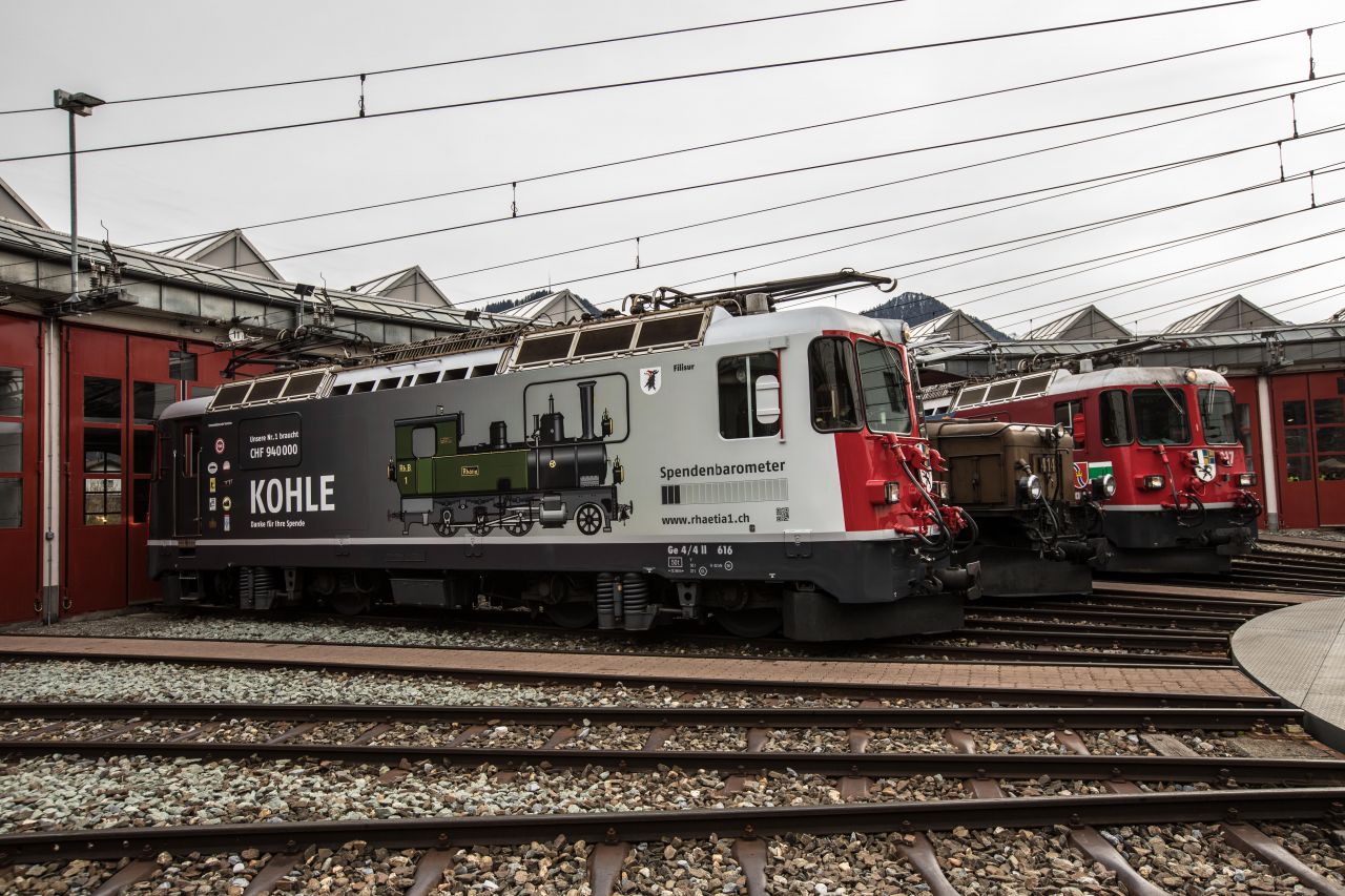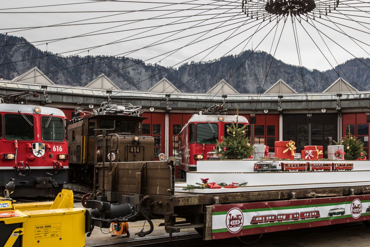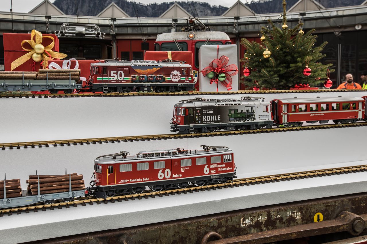 Zum Beginn des Geburtstagsreigens Mitte Jahr beschenkte sich LGB mit einer eigenen Jubiläums-Werbelok «50 Jahre LGB». Das heisst, sie liess die Ge 4/4 II 617 «Ilanz» mit einem schönen Jubiläumsmotiv bekleben. Zum Abschluss des Jubiläums am 30.11.2018 überraschte LGB die grosse Fangemeinde erneut. Zum einen liess sie auf der inzwischen 60jährigen RhB-Lok Ge 6/6 II 702 «Curia» den Schriftzug «60 Jahre – 6 Millionen Kilometer» bekleben. Zum andern präsentierte sie ein so genanntes «Handmuster» eines neuen Lokmodells: Unsere Spendenlok Ge 4/4 616 «Filisur», auch bekannt unter dem Namen «Kohlelok», wird nun ebenfalls als Modell hergestellt und verkauft werden. Das Allerbeste daran ist, dass 50 Euro in die Spendenkasse zu Gunsten der Dampflok RHÆTIA gehen.