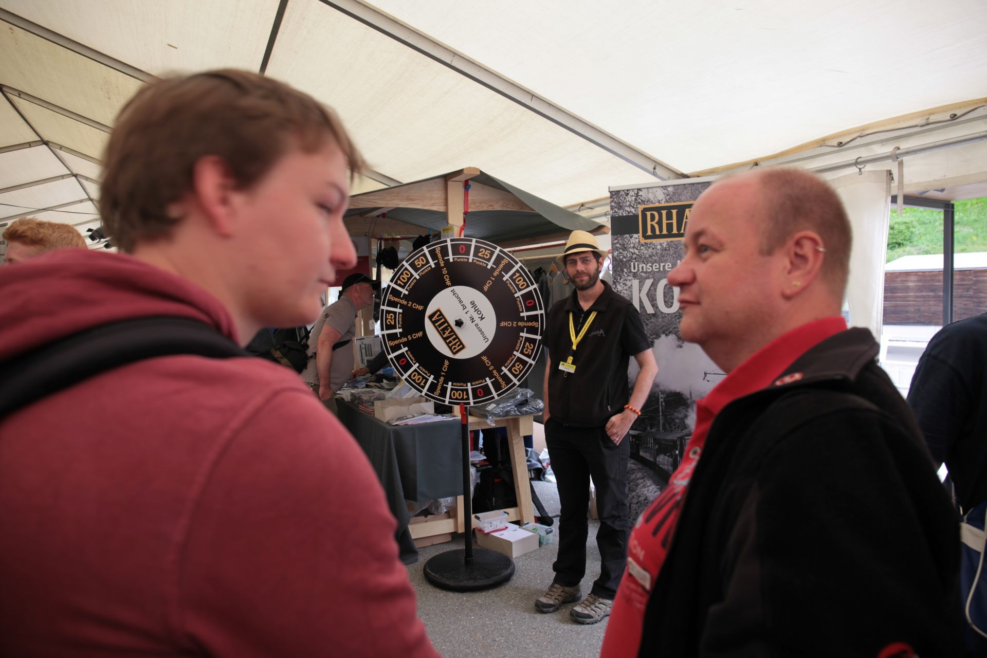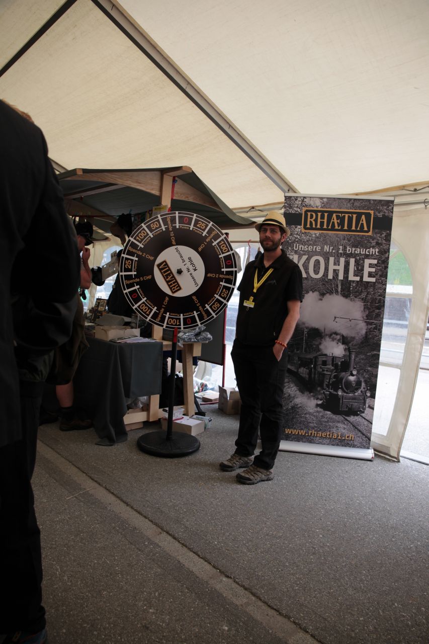 - Das Glücksrad am historic-RhB-Stand, gesponsert von den Champex-Linden-Modellspielwaren aus Dormagen (D) drehte sich fleissig: Es wurden rund 800 Franken an Spendengeldern eingenommen.