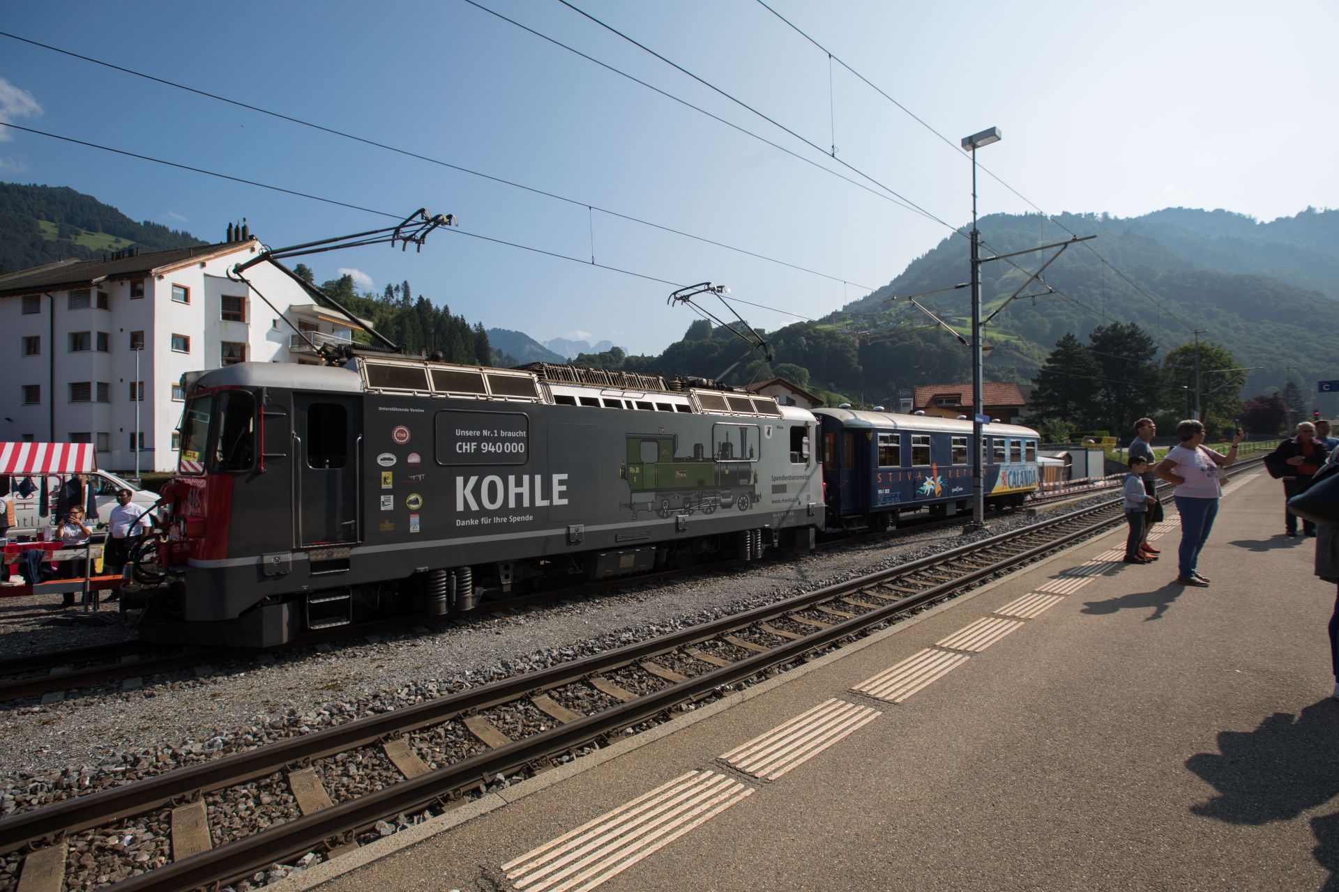 In Jenaz und Küblis wurden die Dampfzug- Gäste zudem mit Speis und Trank empfangen. In Jenaz wurde sogar eine Hüpfburg aufgestellt.