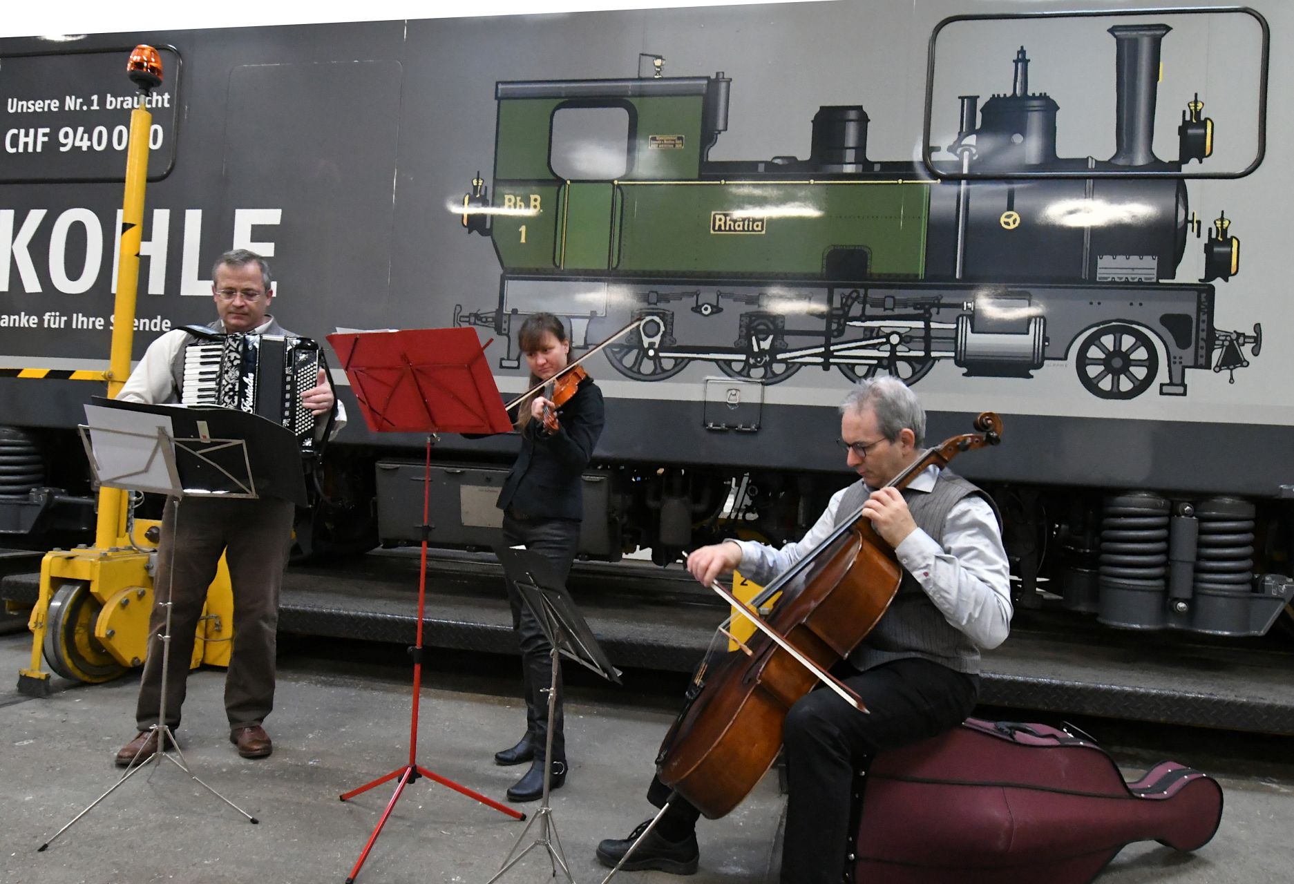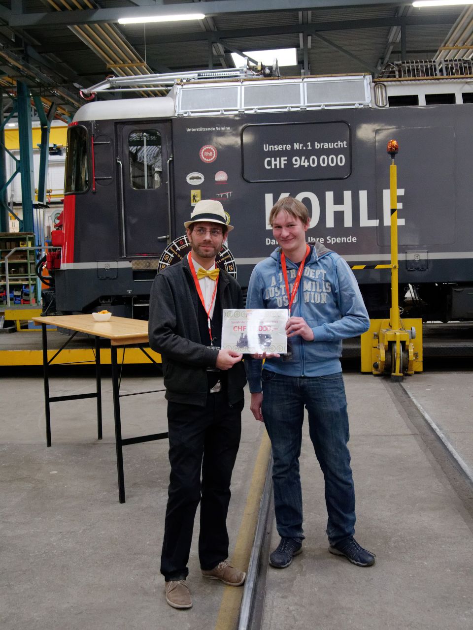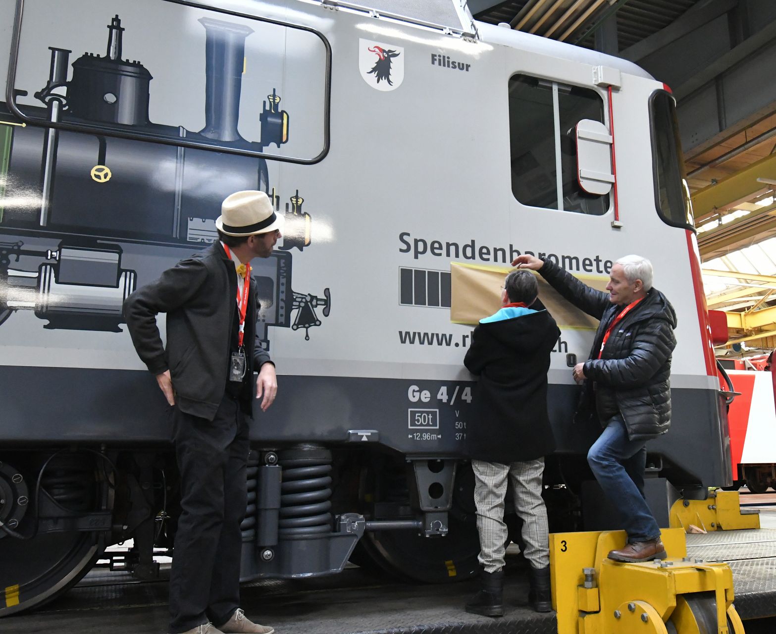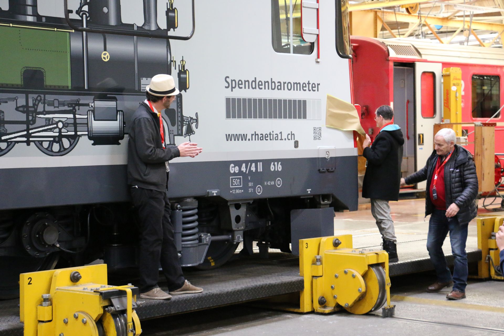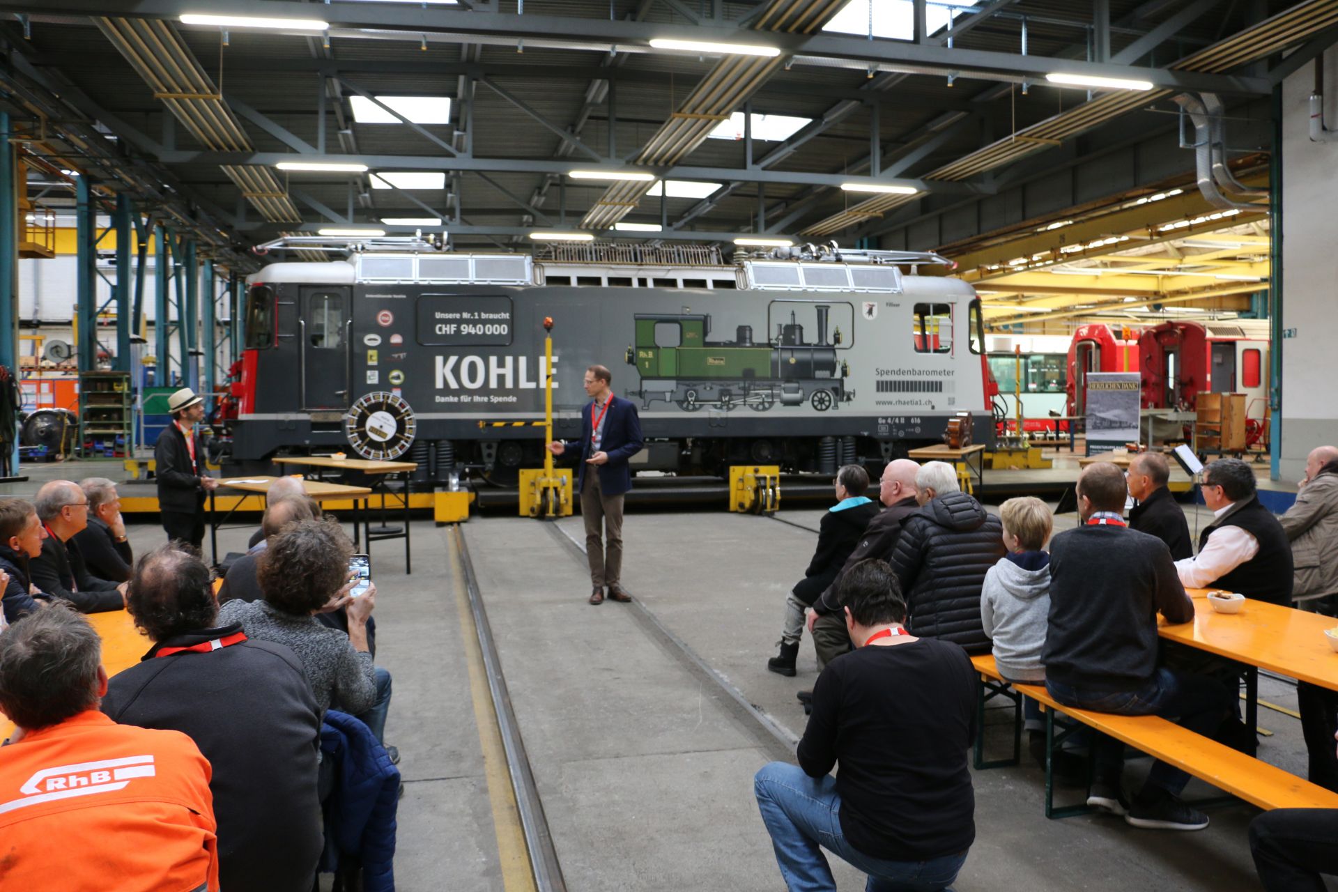 Am 7. Dezember 2019 haben sich rund 50 Sponsoren und Spender, die Projektgruppenmitglieder, RhB- und Behördenvertreter, Journalisten, die Vorstände von historic RhB und Gäste in der RhB-Hauptwerkstätte in Landquart getroffen, um etwas ganz Besonderes zu feiern: Die Enthüllung des neuen Spendenbarometerstandes auf der «Kohlelok».